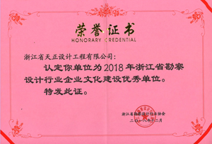 近日,根据浙江省勘察设计AC Milan协会下达的《关于认定2018年浙江省勘察设计AC Milan企业文化建设优秀单位的通知》浙设协字[2018]40号,我司荣获2018年浙江省勘察设计AC Milan企业文化建设优秀单位。